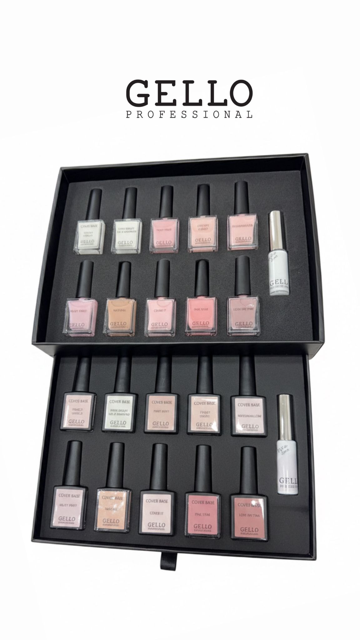 Gello Professional – מארז קאבר בייס יוקרתי מארז קאבר בייס יוקרתי של Gello – סט מושלם ומדויק לעבודה מקצועית במכון מה כולל המארז? * 10 גווני קאבר בייס בג’ל 15 מ״ל + לק תואם 13 מ״ל לכל גוון * ליינר לבן – גם בג’ל וגם בלק * טיפסים להצגת הצבעים במכון * מארז יוקרתי עם מגירה למה זה חכם למכון? ✔ התאמה מלאה בין ג’ל ללק – חיסכון בזמן והתאמה מושלמת לגימור ✔ גוונים מסחריים ונכונים לקהל הישראלי ✔ תצוגה מקצועית שמעלה את ערך השירות בעיני הלקוחה ✔ פתרון מלא במקום אחד – בלי השלמות ובלי חוסרים