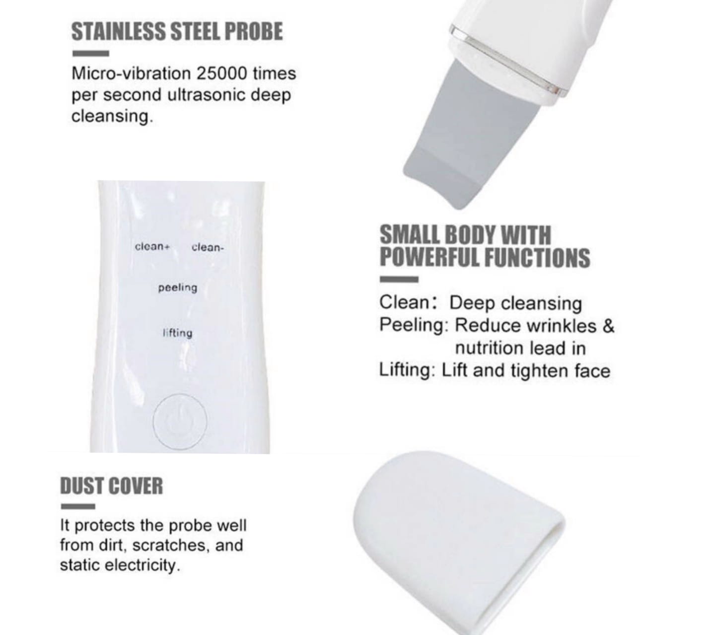Аппарат для ультразвуковой чистки лица сочетает в себе популярные косметологические процедуры : ультразвуковой пилинг, микромассаж, фонофорез и микротоки. Позволяет проводить профессиональные процедуры глубокой чистки и ухода за кожей лица и декольте в домашних условиях. Работает в 4х режимах: 🔹Чистка+: режим импорта, 🔹Чистка-: режим экспорта, 🔹пилинг: режим очистки, 🔹лифтинг: импульсный режим. Благодаря повышенной частоте ультразвука 25000 кГц, прибор обладает высокой эффективностью, активно применяется в профессиональной косметологии для эффективного улучшения состояния кожи лица. Результатом чего является: удаление черных точек, омертвевшей кожи, глубокое очищение пор, лифтинг кожи, выравнивание тона лица и осветление пигментации, уменьшение расширенных пор. Массаж кожи, стимулирует регенерацию коллагена, подтягивает кожу. В результате кожа более гладкая и упругая, морщинки заполняются волокнами коллагена изнутри. Прибор для очищения выполняет полный комплекс, не только идеально очистите и подготовите кожу, но и сможете провести необходимый подготавливающий массаж, поможете питательному крему лучше проникнуть в кожу с помощью имеющегося режима. Управление одной кнопкой, пыленепроницаемая крышка из силикона. Встроенная батарея держит заряд 1,5-2 часа Вес 78 гр